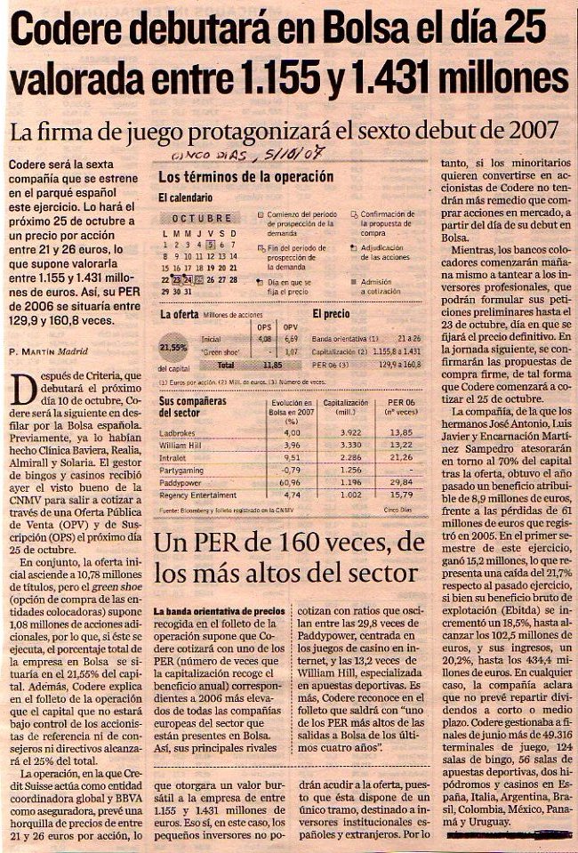 Codere debutará en Bolsa el día 25 valorada entre 1.155 y 1.431 millones |