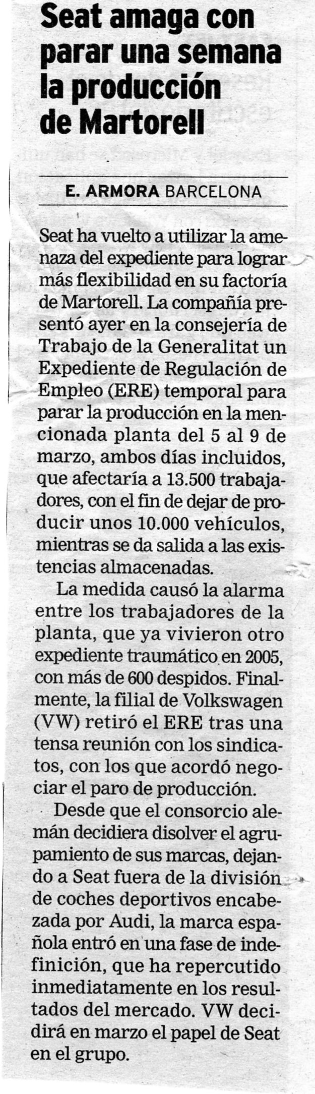 SEAT amaga con parar una semana la producción de Martorell