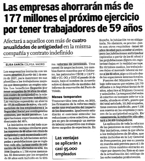 Las empresas ahorrarán más de 177 millones el próximo ejercicio por tener trabajadores de 59 años.