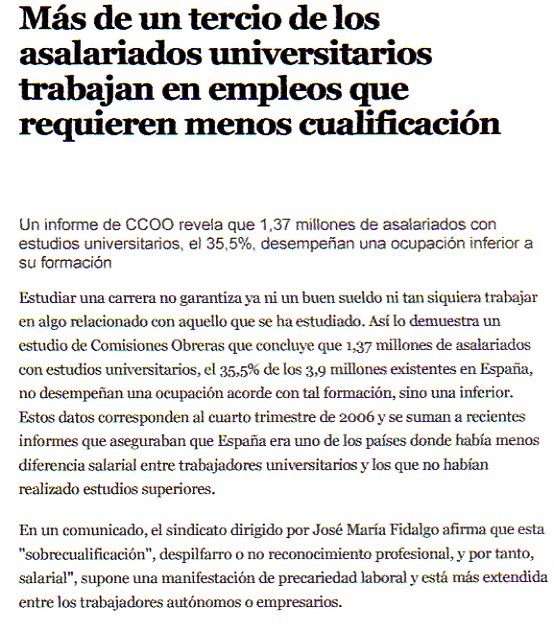 Más de un tercio de los asalariados universitarios trabajan en empleos que requieren menos cualificación