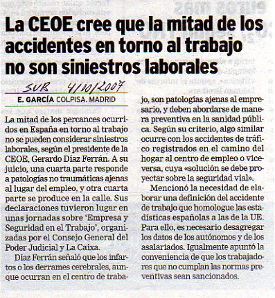 La CEOE cree que la mitad de los accidentes en torno al trabajo no son siniestros laborales