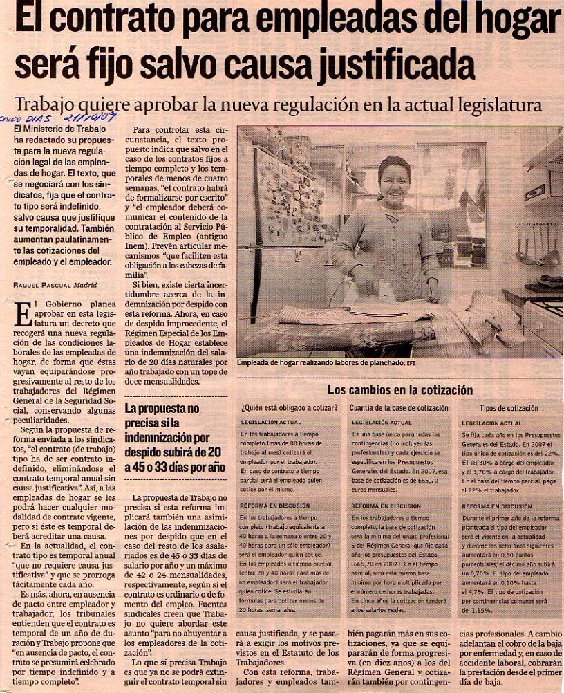 El contrato para empleadas del hogar será fijo salvo causa justificada