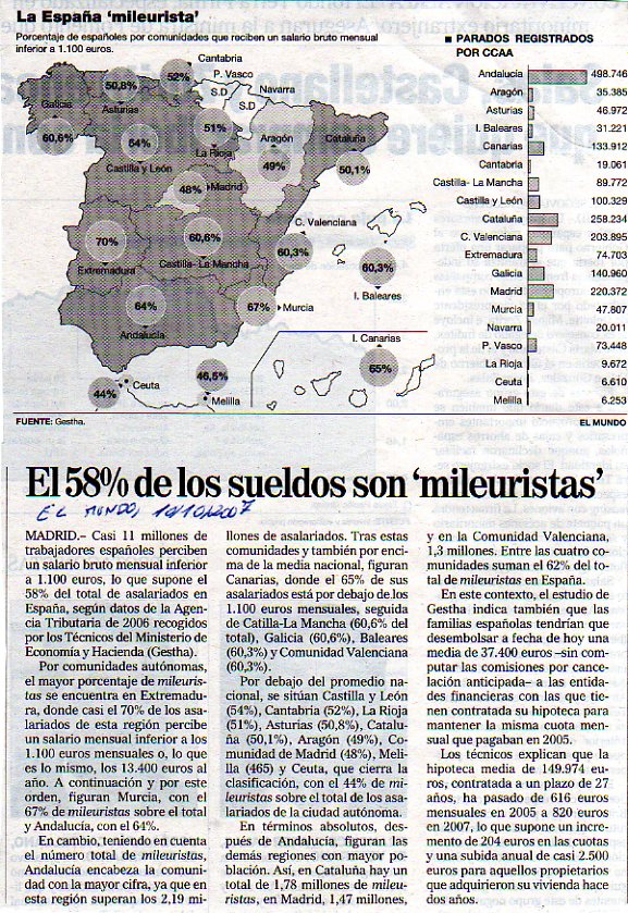 El 58% de los sueldos son “mileuristas”