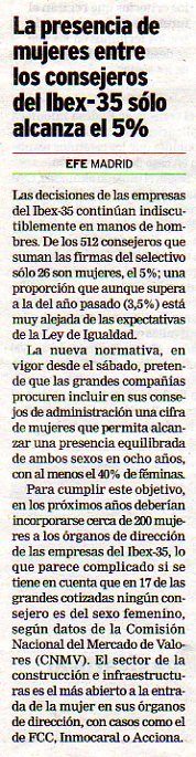 La presencia de mujeres entre los consejeros del Bies-35 sólo alcanza el 5%