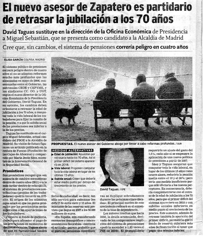El nuevo asesor de zapatero es partidario de retrasar la jubilación a los 70 años.